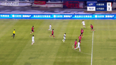 11月01日讯 中超第29轮 长春亚泰vs北京国安。比赛第83分钟,贺一然乌龙助攻,法比奥破门,国安客场4-0领先。