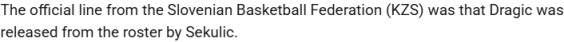 斯洛文尼亚篮球联合会(KZS)的官方说法是,德拉季奇是被塞库利奇从名单中除名(was released)的。