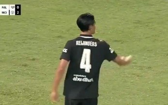 曼城在昨天的热身赛客场3-0战胜巴勒莫,赖因德斯在比赛中梅开二度。不过球迷们发现,赖因德斯球衣背后的名字印成了Reijinders,比他真正的名字Reijnders多了一个字母i。
