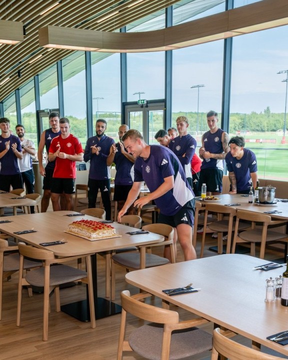 曼联中卫德里赫特迎来26岁生日,球队为他准备了蛋糕,曼联社媒晒出队友们为他庆祝生日的照片。