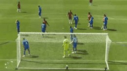 卢顿对阵彼得堡联的英甲比赛,马科索在争抢落点过程中拳击彼得堡联球员约翰逊。