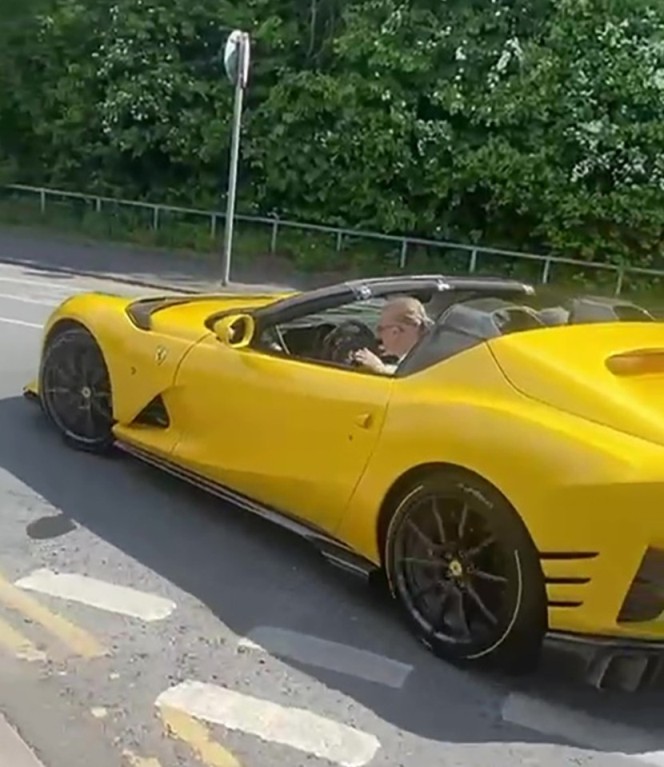 今年5月,他被拍到驾驶一辆亮黄色、价值32万英镑的法拉利812 Superfast敞篷跑车。
