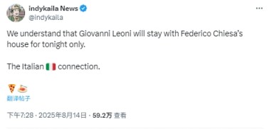绿帽哥写道:“我们了解到今天晚上莱奥尼会在基耶萨的家过夜,仅仅是今天晚上。 意大利人之间的联系。”